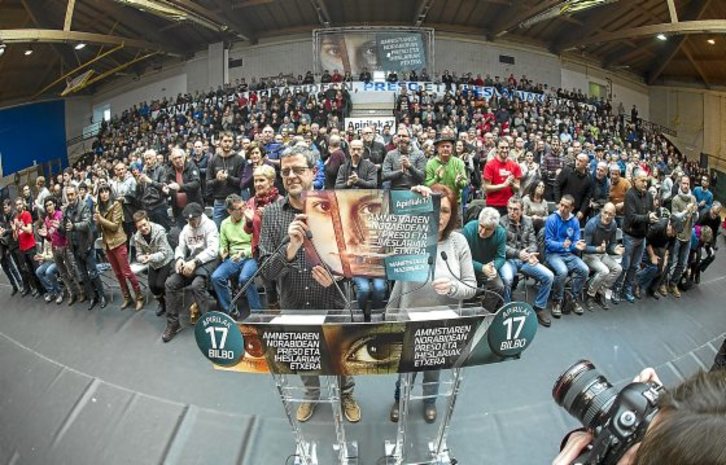 Desde históricas militantes imputadas en el Proceso de Burgos hasta jóvenes enjuiciados en los macrosumarios de los últimos años, pasando por expresos con más de 25 años de cárcel a sus espaldas. Medio siglo de militancia represaliada se dio cita ayer en el polideportivo de Usurbil para presentar el manifiesto «Amnistiaren norabidean, euskal preso eta iheslariak etxera», con el que más de 1.000 expresos y exrefugiados muestran su apoyo indiscutible a las decisiones que los 392 presos políticos vascos tomen para facilitar su vuelta a casa. Una cita que aprovecharon para llamar a participar en la manifestación convocada para el próximo 17 de abril en Bilbo.