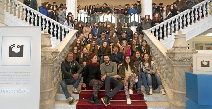 Cerca de 500 estudiantes de ocho centros educativos de Donostia analizaron y reflexionaron ayer sobre los motivos e intereses detrás de las guerras dentro de la iniciativa “Diseñar un futuro sin guerras”. El Teatro Victoria Eugenia acogió una última sesión de trabajo que dio como fruto una declaración antibelicista conjunta. El documento final se enviará a distintas instituciones, tales como el Tribunal de DDHH de La Haya, la ONU, la UNESCO, el Gobierno español o el Gobierno de Lakua.