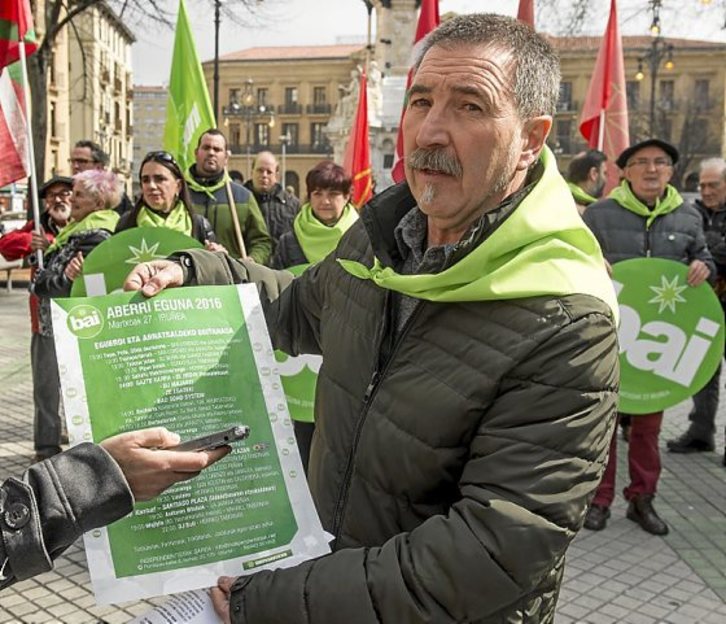 La red Independentistak presentó ayer en Iruñea los actos del Aberri Eguna de este año, que se celebrará el próximo día 27 de marzo. El lema del evento será la palabra «bai». Según explicaron los organizadores, «hemos entrado en una nueva fase: la fase de decisión. Ha llegado la hora de decidir y vamos a tomar esas decisiones diciendo ‘bai’ a la democracia, a la justicia social, al euskara, al futuro, al estado vasco soberano, a la república vasca y a la independencia».