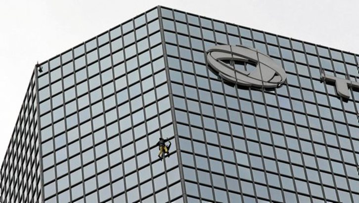 El conocido como «Spiderman francés», Alain Robert, escaló ayer hasta lo alto de la Torre Total situada en el distrito de negocios de La Défense (París). Se trata de la quinta vez que asciende esta mole de 187 metros de altura, y esta vez ha invertido 45 minutos en culminar la proeza. Robert, de 53 años, ha escalado más de un millar de edificios de gran altura de todo el planeta, siempre en estilo libre: es decir, sin más ayuda que sus brazos y piernas.Jacques DEMARTHON | AFP PHOTO