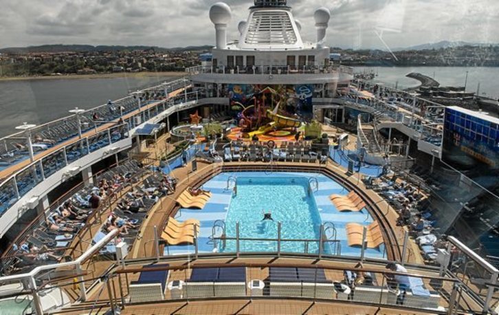 Una capacidad para 4.180 pasajeros en ocupación doble, una eslora de 347 metros y un registro bruto de más de 168.000 toneladas. Esos números por sí solos ya dan a entender que el “Ovation of the seas”, que ayer estuvo atracado en el Puerto de Getxo, no es un barco cualquiera. Propiedad de la compañía Royal Caribbean, es un crucero recién inaugurado y que cuenta con espectaculares espacios y avances tecnológicos. Monika DEL VALLE | ARGAZKI PRESS