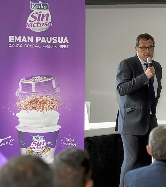 A la presentación de este novedoso producto asistieron Eduardo Urrutia, presidente de Kaiku, Xabier Aristi, director general de Kaiku Corporación Alimentaria, y el corporativista Manuel Juanena. Entre los tres explicaron las características y propiedades del nuevo producto ante una amplia representación de ganaderos, clientes y personal, así como de representantes del Gobierno de Nafarroa. En concreto, acudieron el vicepresidente, Manu Ayerdi, y la consejera de Desarrollo Rural, Administración Local, Medio Ambiente y Ordenación del Territorio, Isabel Elizalde.