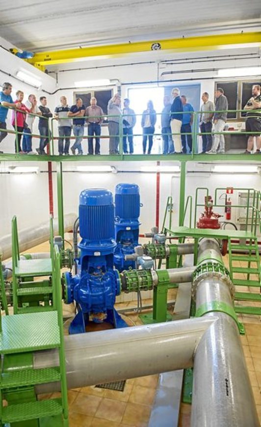 Tras descender por una larga y estrecha escalera, los visitantes llegaron a una sala donde se veían los conductos por donde sale el agua. «Hay dos tubos y dos válvulas. Una siempre está abierta y la otra es de emergencia», explicó. Además, la presa dispone de una abertura por la que sale el agua en caso de que el nivel sea muy alto.