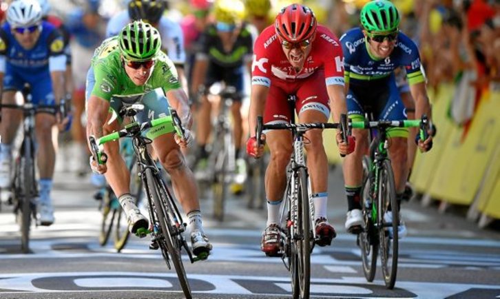 El eslovaco puso a prueba, con la victoria conseguida gracias a un golpe de riñón que le permitió que solo estuviera por delante de Kristoff cuando cruzó la línea de meta, la dudosa palabra de Oleg Tinkov. El magnate ruso había anunciado a principio de temporada que esta iba a ser la última de su equipo, cansado de poner cada año millones de euros y de que se le fuera el sponsor que tenía, Saxo Bank. Pero en la jornada de descanso de Andorra sorprendió al decir que seguiría con el equipo si ganaba tres etapas y el maillot verde.