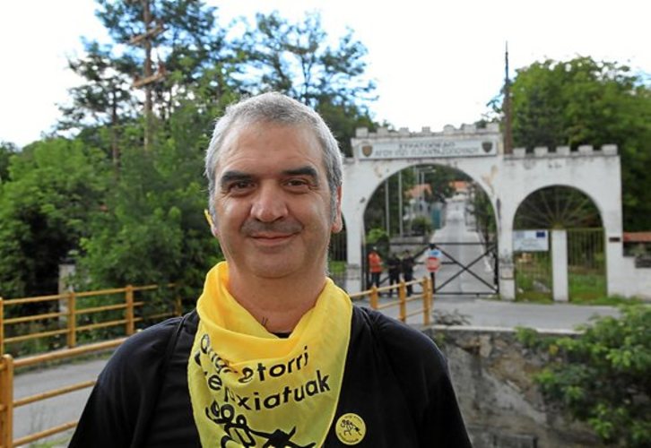Carlos Azkunze es una de las más de 150 personas que, desde Euskal Herria, han llegado a Grecia en la caravana organizada para denunciar las políticas migratorias y de refugio de la Unión Europea. Con él hablamos tras un largo día de movilizaciones.