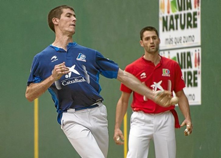 A pesar de que solo juega con una mano, como ante Olaizola II-Merino II, Beñat Rezusta saltó a la cancha para demostrar que es capaz de pegar y pegar, casi siempre con la misma violencia y velocidad, a la pelota sin despistarse en su cometido. Esa constancia fue la que marcó la diferencia respecto a un Jon Ander Albisu que, para nada le dio menos, pero que estuvo mucho más disperso, acumulando algunos errores de más.