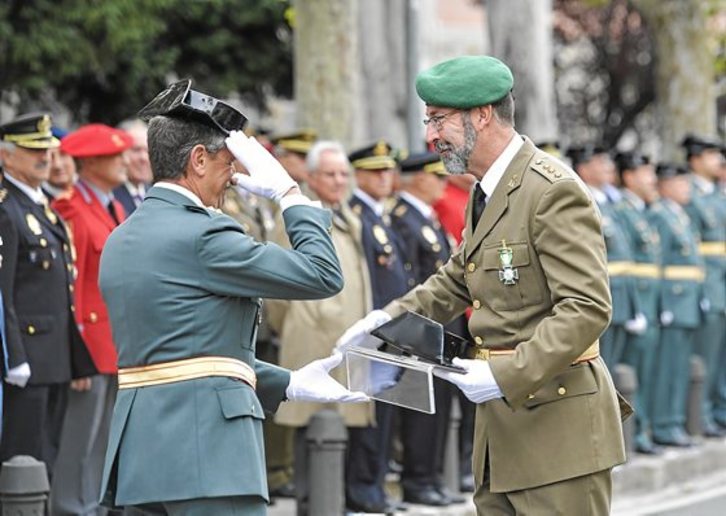 En la celebración de ayer en Iruñea también fueron condecoradas una veintena de personas, no solo guardias civiles y militares sino también representantes de empresas de seguridad privada, como Prosegur.
