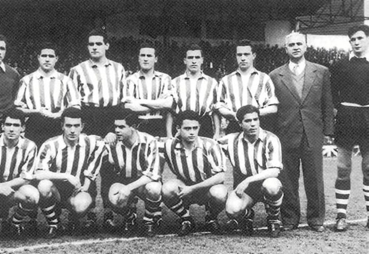 El Athletic daba sus primeros pasos en los cincuenta con los mismos mimbres que en los cuarenta, aunque con los Iriondo, Venancio, Zarra, Panizo y Gainza ya entrados en años. Sequía de títulos hasta que pone sus pies en el Botxo un eslovaco que en su primer año acabó tercero, pero avisando de que el duopolio Madrid-Barcelona tenía competencia. Y esa idea la afianzó en la Copa, ante el Sevilla, con Artetxe de defensa y una preciosa volea de Uribe, amén de unas promesas hechas realidad como el propio Artetxe o Arieta, Mauri o Maguregi, Orue, Garay y Canito.