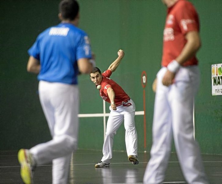 A partir de entonces, las tornas cambiaron por completo. Si hasta entonces Urrutikoetxea se había empleado en ayudar a su zaguero entrando de sotamano con la idea de darle cierto aire y de quitarle pelotas complicadas, contagiado quizá por la determinación y la confianza que su zaguero irradiaba, el de Zaratamo dio un paso adelante, entró también al remate, con el dos paredes como una opción recurrente y, como el ratio de acierto/error en el remate de sus oponentes seguía sin ser demasiado productivo, los colorados tomaron una renta importante en el marcador, hasta adelantarse 21-13, una vez superado un amago de crisis que Imaz tuvo, errando dos pelotas consecutivas en el 16-13.