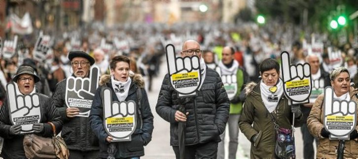 Tras mostrar su agradecimiento a quienes se manifestaron y a quienes hubieran querido estar en Bilbo pero no pudieron hacerlo, a los cientos de sarekides que trabajaron en la organización y a las personalidades del ámbito social y cultural que mostraron su adhesión a la marcha, los portavoces de la iniciativa ciudadana Bego Atxa y Joseba Azkarraga destacaron que es hora de «comprometerse con un país que tras décadas de violencias, de muchas violencias, necesita caminar por senderos de convivencia y, sobre todo, dejar una sociedad mejor a nuestros hijos e hijas».