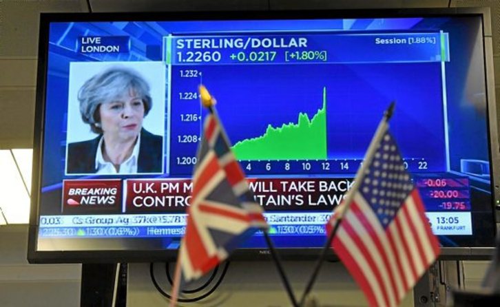 Asimismo, se pretende conformar un proceso de implementación paulatina de los acuerdos que evite «la caída por un precipicio» que tanto temen los sectores de la City. Quizá ese haya sido el factor principal por el cual, a pesar de haber anunciado un «Brexit duro» en la práctica, la libra respondía con subidas, tras la caída de inicios de semana.