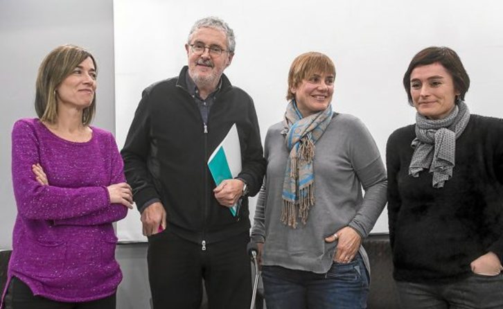 Los secretarios generales de ELA, Txiki Muñoz, y de LAB, Ainhoa Etxaide, comparecieron conjuntamente ayer en Bilbo para trasladar su valoración del acuerdo interprofesional alcanzado esta semana con la patronal Confebask, junto con las centrales UGT y CCOO, dando prioridad a los convenios vascos frente a los estatales. Lo consideraron un paso positivo pero insuficiente dado que, a su juicio, no soluciona el desbloqueo existente.