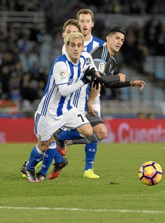 La Real volvió a salir mejor en la segunda parte, pero esta vez no fue de más a menos como en la primera y con la entrada de Oyarzabal y Xabi Prieto el equipo blanquiazul fue muy superior a un cuadro vigués que bajó en la intensidad de su presión.