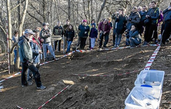 Hace un par de semanas los miembros de Islada Ezkutatuak ya dieron a conocer algunos objetos encontrados en este monte, situado en el término municipal de Donostia pero muy cerca de la muga con Lasarte-Oria. Entre otras cosas, hallaron una pistola, proyectiles, una funda de cuero y un mechero.