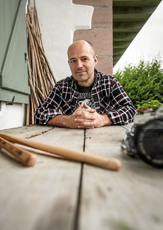 De Dut existe un comunicado de despedida, de Kuraia no. «La bestia sigue invernando, nunca dijimos que murió», afirma Galder, en la imagen apoyado en una txalaparta, instrumento que ya toca en el inicio de Dut.