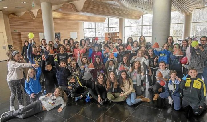 Alumnas y alumnos de sexto de Primaria de Ibai Ikastola, en el barrio Antiguo de Donostia, han salido de excursión al vecino CIC Nanogune para participar en un taller pionero que tiene como objetivo resaltar el papel de las mujeres en la ciencia. En tres grupos, realizarán un recorrido por el centro de investigación acompañadas por científicas. ¡Comencemos!