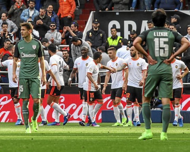 El permisivo González Borbalán señaló el final del partido, incluidos tres eternos minutos de prolongación, y al seguidor rojiblanco al otro lado del televisor o del aparato de radio le invadió un desasosiego difícil de explicar, entre el cabreo monumental acumulado, una resignación tan indulgente como la imagen de su propio equipo y una confirmación de lo que es esta campaña barrunta para los leones. «Cuando las cosas se tuercen, nunca sabes hasta dónde van a llegar a torcerse», fue la primera reflexión a pie de campo de un Gorka Iraizoz que no tuvo culpa alguna en la sangrante derrota en Mestalla, y sangrante no por el marcador final, ni siquiera por los infortunidos acontecidos, sino por la pobrísima imagen mostrada, solo edulcorada por el pundonor demostrado con diez menos durante 35 minutos, y que al menos sirvió para que los valencianistas no hicieran sangre de un Athletic superado por las circunstancias y que lleva camino de batir récords negativos lejos de su feudo. Desde la 2007-08 no enlazaba cuatro partidos seguidos a domicilio sin marcar, y es el equipo menos goleador fuera de casa. Ayer desnudó sus porqués.