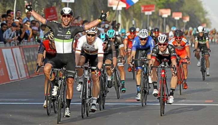 Ayer, Cavendish se reencontró con la victoria y se enfundó el primer maillot rojo de líder al imponer su poderío al sprint en la primera jornada, con salida y llegada en Madinat Zayed y un recorrido de 189 kilómetros. En un desenlace accidentado, en el que se fue al suelo el alemán Marcel Kittel, uno de los grandes favoritos, el corredor de la Isla de Man recuperó la sonrisa con un triunfo inapelable por delante del alemán André Greipel (Lotto Soudal) y del italiano Niccolo Bonifazio (Bahrain).