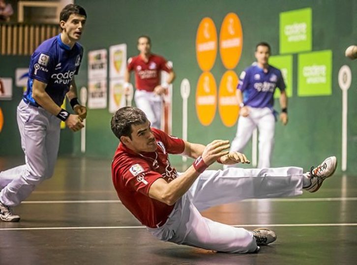 El partido de ayer tampoco resultó sencillo. Merino II saltó muy fresco a la cancha, la pelota le salía con chispa de sus dos manos y, por mucho que Joseba Ezkurdia no terminaba de atreverse con el gancho, la velocidad que le imprimían a la pelota era suficiente para adquirir rentas esperanzadoras en el marcador (2-6 y 4-7).