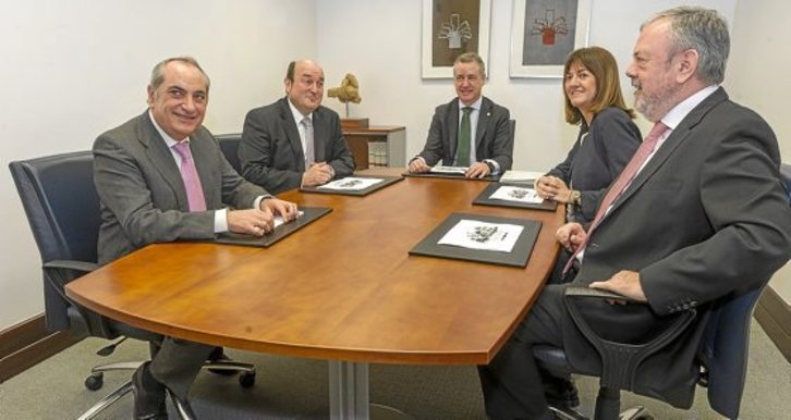 La decisión, según explicó Azpiazu, salió de la reunión que ayer mantuvo el lehendakari, Iñigo Urkullu, con los máximos dirigentes de PNV y PSE, Andoni Ortuzar e Idoia Mendia, con el consejero de Vivienda y cabeza visible de su partido en el Ejecutivo, Iñaki Arriola, y con el propio consejero de Hacienda.