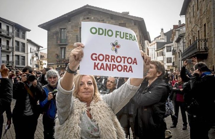 El colectivo coloca 48 placas en Bilbo y 14 en Donostia y desafía a ambos consistorios con ponerlas de nuevo si las retiran, tal y como han anunciado los alcaldes, que argumentan que no es el camino.