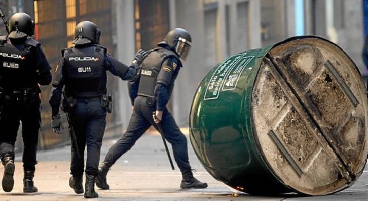 La Policía española le cortó el paso argumentando por un lado que no se había solicitado permiso y por otro que se había atacado un cajero automático y lanzado piedras y botellas.