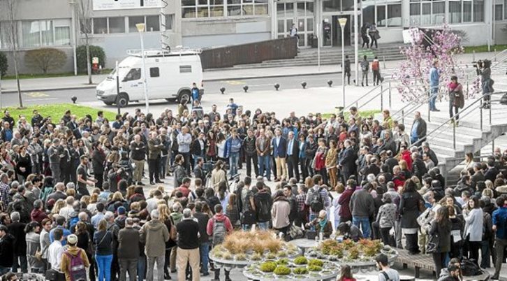 En la concentración de condena participaron la consejera de Educación de Lakua, Cristina Uriarte, así como la rectora de la Universidad, Nekane Balluerka, quien afirmó que «las conductas intimidatorias de unas pocas personas no pueden acabar con la convivencia pacífica de una institución universitaria pública abierta a la sociedad».