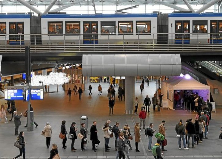 La primera estación en poner las urnas fue la Central de Ámsterdam, que lo hizo a medianoche del martes y ya registró filas de viajeros de trenes de cercanías, mientras que varias han empezado también a funcionar antes de la hora oficial de apertura de los colegios. Los viajeros se identifican, rellenan su papeleta, la depositan en la urna-contenedor y salen directamente al andén, corriendo a veces, para coger los trenes que se suceden en dirección a Doordrech o Rotterdam.Laura PÉREZ-CEJUELA