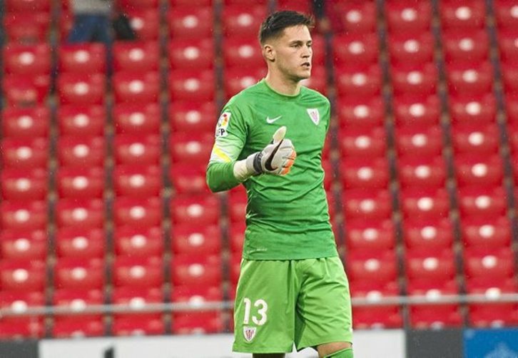 Alex Remiro acabó en el hospital tras recibir un fuerte balonazo en la cabeza, si bien las exploraciones no revelaron ninguna lesión.