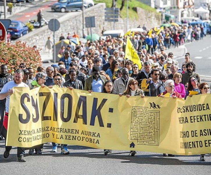 Una marcha organizada por SOS Racismo bajo el lema «Soluzioak: derechos de asilo y acogimiento efectivo» partió desde Pasaia para terminar en Donostia con el objetivo de denunciar la situación de los refugiados y la política de asilo de la Unión Europea. El año pasado ya advirtieron de que sin solidaridad los problemas se agudizarían.