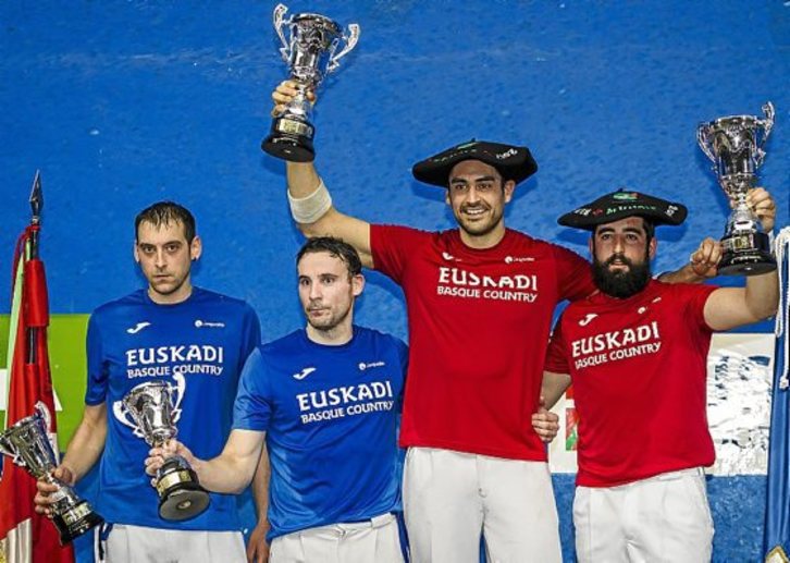 Pero es en esos momentos críticos en los que aparecen los grandes campeones y, justo después de fallar tres inusuales pelotas que dieron aire a Gaubeka-Imanol, Fusto volvió a tomar el mando del partido para firmar el tercer 10-8 consecutivo con el que se hicieron con las preciadas txapelas, la tercera consecutiva de un Ibai Pérez en estado de gracia que sufrió en el comienzo del partido, pero que fue a más a medida que la final se fue endureciendo.