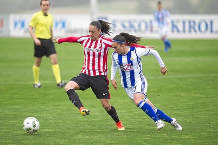 El derbi se le torció desde el principio, apenas habían transcurrido tres minutos cuando Nekane se retiraba lesionada. Entró Leia y Joseba Agirre tuvo que recolocar a medio equipo. Lo notó ante un rival que le complicaba las cosas con su presión, aunque hubo muy pocas ocasiones claras en un primer tiempo con bastante más intensidad que juego.