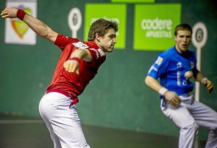 No llegaron a diez los tantos que el pelotari goierritarra necesitó para tomarle las medidas al frontón en el que también se jugará el pase a la final ante su hasta hace tres semanas pareja Beñat Rezusta y, una vez asentado en la cancha, se sacudió todos los temores a pelotazos.
