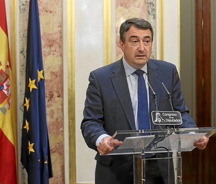 Andoni Ortuzar se mostró en todo momento sonriente y satisfecho por el pacto alcanzado «por el bien de Euskadi».