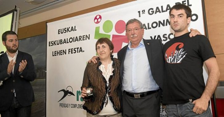 La Federación Vasca de Balonmano entregó ayer la insignia de oro al periodista de “Egin” y GARA Juan Carlos Elorza, fallecido en febrero de 2016, por su amplia y brillante trayectoria siguiendo este deporte. Su hermana y su sobrino recogieron el distintivo en la II Gala del Balonmano de Euskadi.J. C. RUIZ | A. PRESS