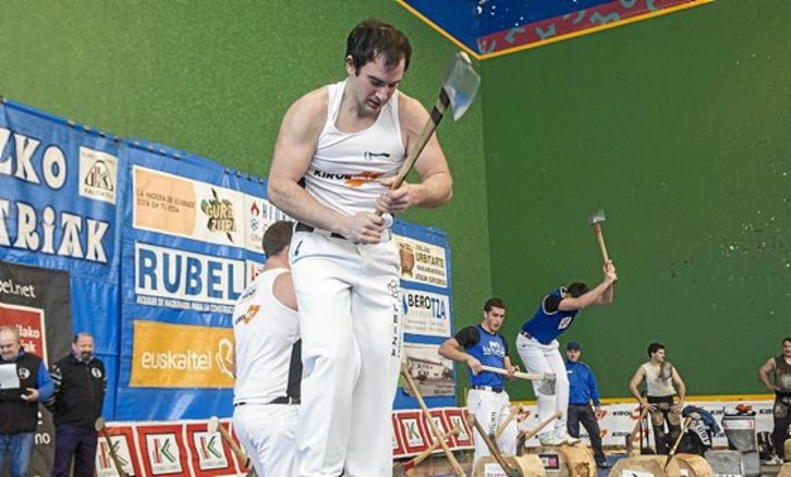 45 ontzakoa zeinek kolpe gutxiagoan moztu; hori izan zen egin beharreko aurreneko lana. 39an ebaki zuen Atutxak, eta Rekondok bi gehiago behar izan zituen. Ondoren, tamaina bereko enborra erlojuz kontra ebaki behar izan zuten, eta biek minutu batean amaitu zuten jarduna.