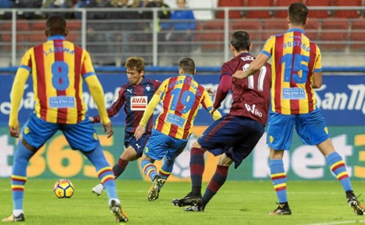 Aunque el partido también confirma que el Eibar tiene aún mucho trabajo por hacer. El equipo se ve cada vez más comodo con la defensa de cinco pero no tanto como para cerrar su área. El Levante se estiró ayer dos veces en todo el primer tiempo, en ambas llegó al área y en ambas marcó. Una losa pesadísima en cualquier caso y más para un Eibar que, al contrario de lo que le sucedía en temporadas anteriores, necesita mil y un llegadas al área para hacer gol.