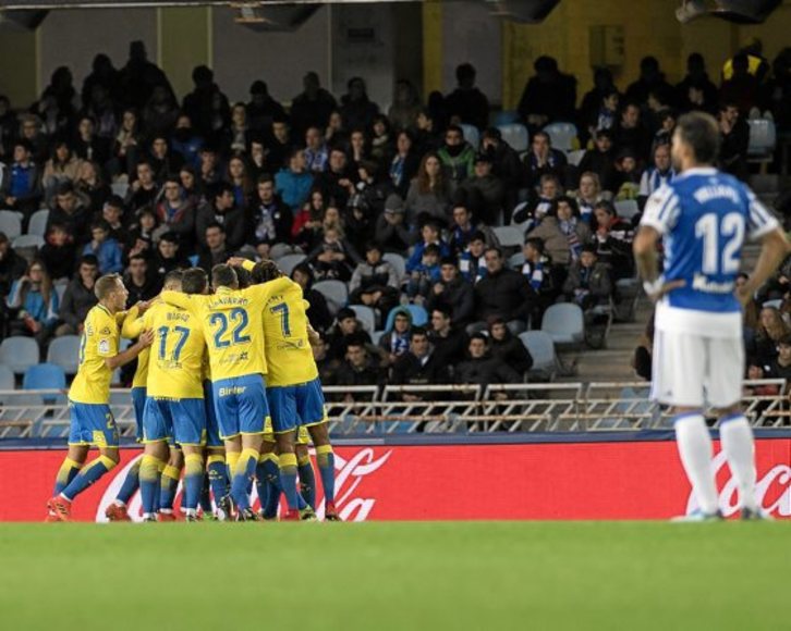 La Real desaprovechó la visita de un equipo que llegaba como colista tras ocho derrotas consecutivas por unos errores que se repiten sin que se aprenda la lección. Los rivales necesitan muy poco para marcar y al Las Palmas le bastó con aprovechar los dos grandes errores defensivos en las pocas oportunidades en las que salió de su campo en los primeros 70 minutos en los que fue muy inferior a la Real.