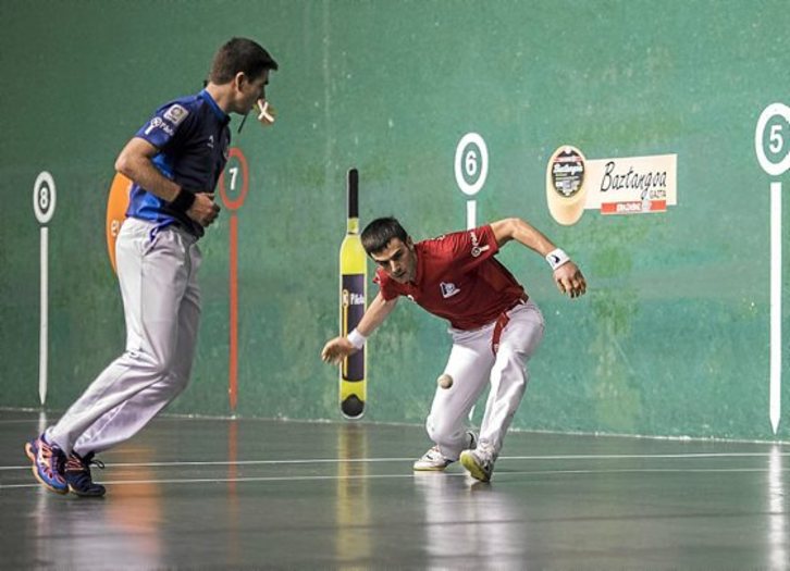 Y eso que el partido comenzó con un fallo muy poco habitual de Rezusta en media cancha, regalo que Irribarria devolvió enseguida, como gesto de gratitud por lo vivido hace un año, con una falta de saque. El choque comenzó equilibrado y disputado, con Merino II dispuesto a plantar batalla en la zaga y sin grandes diferencias enre unos y otros. la mayor fue la suerte y el primer hueco serio se abrió por culpa de la chapa, contra la que Iker Irribarria estrelló tres pelotazos que podían haberle otorgado otros tantos tantos en caso de haberlos ajustado un par de milímetros más arriba. Para el 7-3, el de Arama había regalado cuatro tantos –las tres chapas y la falta de saque– una situación que marcó, y mucho, el resto del desarrollo del partido.