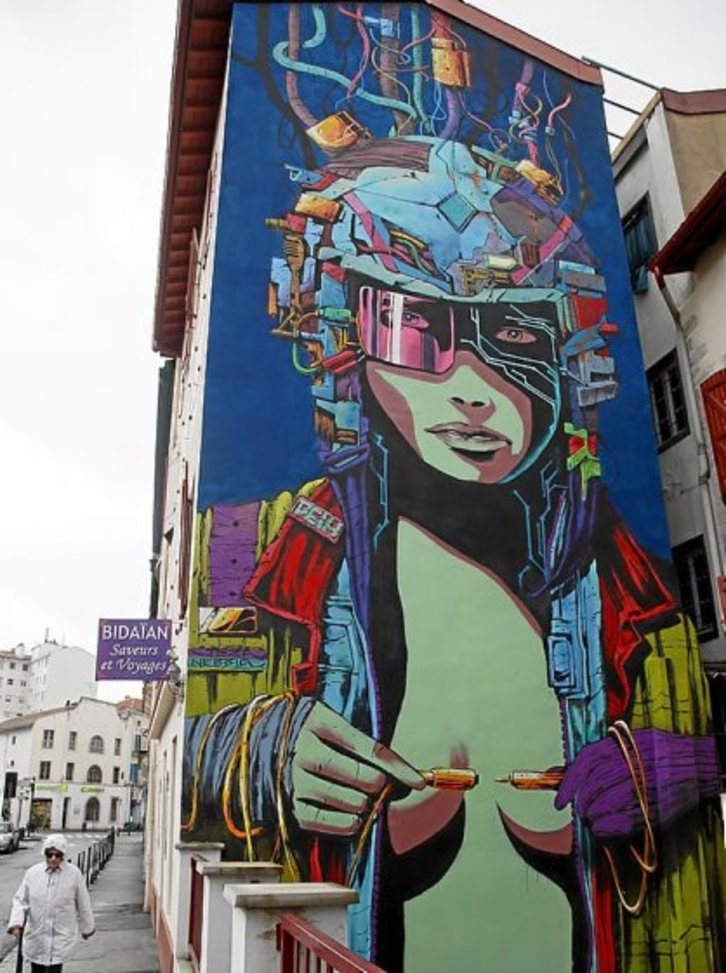 Cincuenta y cinco grafitis repartidos por todo el mundo forman la clasificación de este pasado 2017 que ha realizado Widewalls, la página web dedicada al arte moderno y contemporáneo, y en el primer puesto aparece la obra realizada por el artista catalán DEIH en octubre en Baiona, en el marco de la programación del festival de «street-art» Point de Vue que tuvo lugar en las calles de la capital labortana. El mural se encuentra en el número 15 de la calle Ulysse-Darraca y, según Widewalls, es una «reflexión cautivadora sobre la sociedad occidental, que depende mucho y está dirigida por la tecnología».