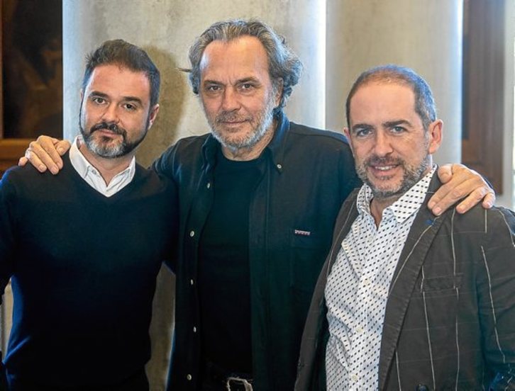 Jose Coronado en el papel de Iván El Terrible se subirá al escenario del Palacio Euskalduna de Bilbo este domingo. También participará la Orquesta Filarmónica de Novosibirsk y la Sociedad Coral de Bilbo, bajo la dirección de César Álvarez y José Carlos Plaza como director de escena. Coronado considera que la obra es «muy actual, por suerte o por desgracia, en la Europa de hoy». Afirma que se enfrenta a este trabajo con «mucha humildad» junto a las 220 personas que forman parte del espectáculo. En la imagen, César Álvarez, Jose Coronado, y Enrique Azurza.