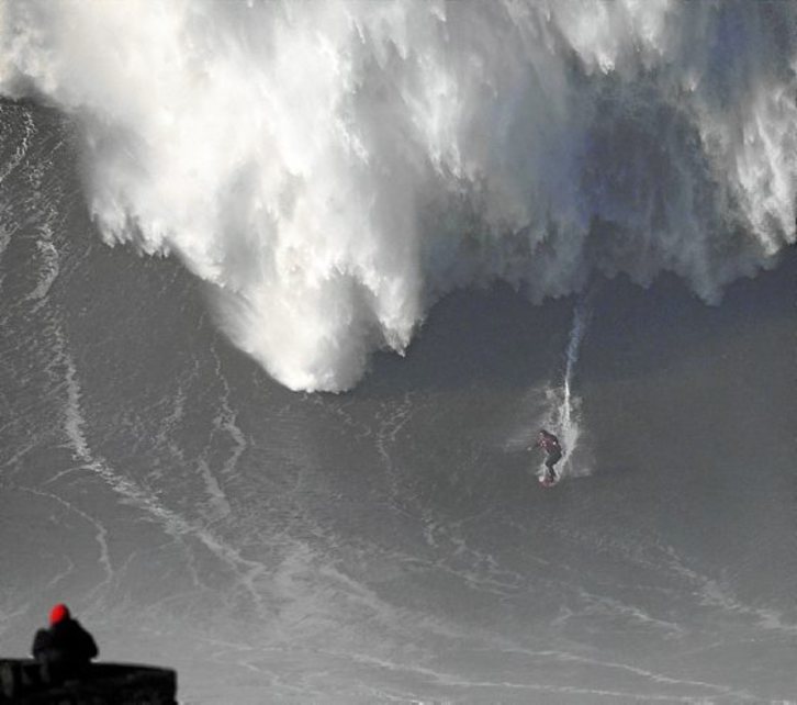 Un invierno más, desde Nazaré llegan imágenes espectaculares de olas gigantes. El surfista de la imagen es Ross Clarke-Jones, mientras que distintas informaciones llegadas de Portugal hablaban de una ola de 35 metros surfeada por el surfista luso Hugo Vau. Difícil de medir y comparar, sería la ola más grande surfeada jamás, un récord que no obstante sigue creando polémica.Francisco LEONG | AFP PHOTO