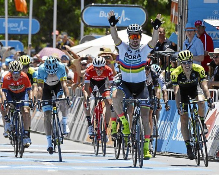 Y a la cuarta etapa del Tour Down Under el eslovaco Peter Sagan (Bora) por fin apareció. El campeón mundial había visto los días anteriores cómo otros sprinters se imponían en los metros finales, y ayer fue él quien se llevó el gato al agua.