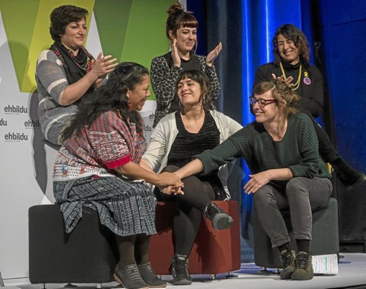 Atzo iluntzean aurkeztu zuten Bilbon, Bilborocken. Ekitaldiak bi atal izan zituen; lehena, barrenera begirakoa, EH Bilduko emakumeentzat, eta bigarrena, irekia, kanpoko gonbidatuekin; bertzeren artean, ERCko Mireia Mata, CUPeko Mireia Vehi, Guatemalako Lolita Chavez, Kurdistango Maryam Fathi eta Saharako Garazi Hach Embarek. Aliatu dituzten mugimendu feministako kideak, ikasle mugimendukoak eta sindikatuetakoak ere gonbidatu zituzten. Koalizioko gizon batzuk ere egon ziren. «Berdintasunaren aldeko borroka, balio feministena, denona da eta EH Bildun guztiok hartu dugu konpromisoa», baieztatu zion GARAri Plazaolak.