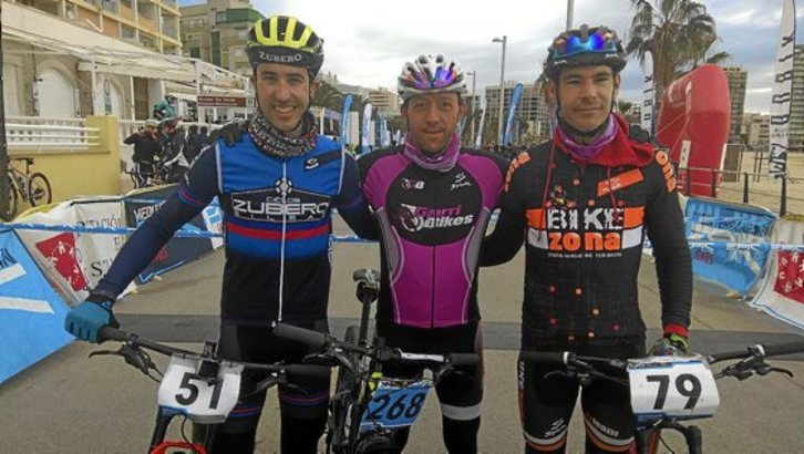 Julen Zubero (Lemoa, 1982), Joseba León (Trapagaran, 1977) y Josean Garrido (Ugao, 1975) acabaron ayer la primera edición de la UCI Mediterranean Epic en Oropesa con 585 participantes que compitieron, pero sobre todo disfrutaron de una especialidad de mountain bike en auge.