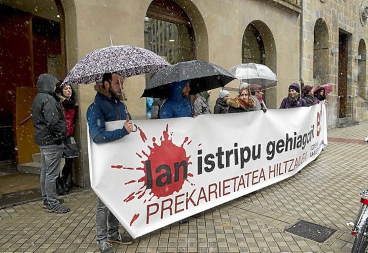ELA, LAB, ESK, Steilas, EHNE, Hiru eta CGT nafar Gobernuaren Obra Publiko, Garraio eta Komunikazio Sailaren aitzinean bildu ziren atzo, zendutako langilearen senide eta lagunei babesa erakutsi eta heriozko lan istripua salatzeko. Aurten jada 10 lagun hil dira Euskal Herrian lanean ari zirela, horietatik bost errepidean. Sindikatuek azaldu zutenez, heriotza hauek guztiek garraiolarien lan baldintzen eta errepideen egoeraren inguruan pentsatzera bultzatzen dituzte, baita konponbideak topatzeko administrazio ezberdinek egiten dutenaren inguruan ere.
