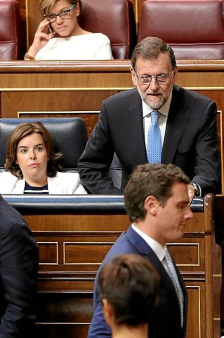 Con una pregunta capciosa sobre una supuesta propuesta del PNV para un referéndum de autodeterminación, Ciudadanos consiguió ayer en el Congreso que el Gobierno español, en lugar de desnudar la falsedad de la iniciativa del partido naranja, entrara en la pugna por demostrar quién de los dos es más firme defensor de la unidad de España.