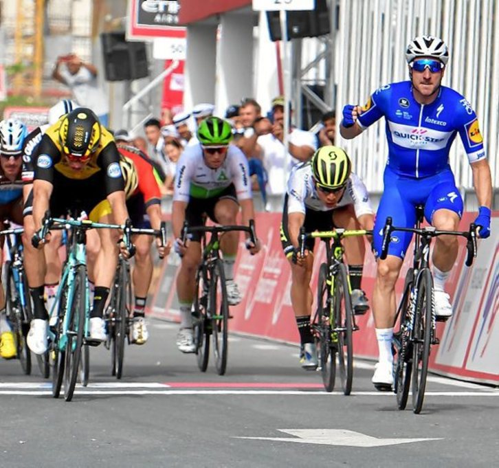 «El joven Álvaro Hodeg es increíble en la preparación del sprint, Michael Morkov siempre está en el lugar correcto y confío en Fabio Sabatini al cien por ciento para la salida. Con semejante equipo, fue fácil para mí llegar a la victoria», explicó en meta Viviani, de 29 años, campeón olímpico de omnium y que ya acumula cinco victorias esta temporada –triunfo de etapa en el Tour Down Under y la general en Dubai más 2 etapas–.
