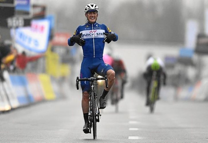 Con 12 muros en el itinerario –el último, el Nokereberg, a 9 km de meta– la clásica flamenca, incluida en el World Tour el pasado año, se disputó en una jornada de lluvia y viento que redujo el pelotón a una treintena de corredores a falta de 50 km, entre ellos casi todos los favoritos. Luego, a falta de 40, comenzaron los saltos y diez más adelante se produjo la escapada de la que terminó sacando provecho Lampaert.
