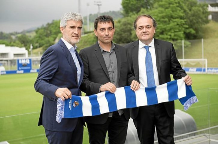 Asier Garitano trasmitió su ambición al ser presentado ayer en Zubieta por el director de Fútbol Roberto Olabe y el presidente Jokin Aperribay tras firmar como primer entrenador de la Real hasta el 30 de junio de 2021.